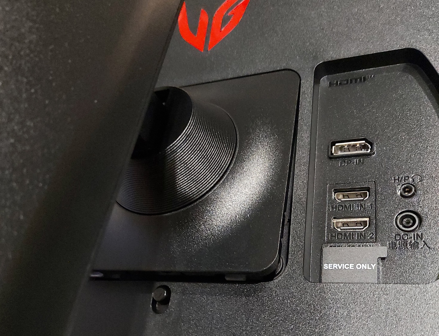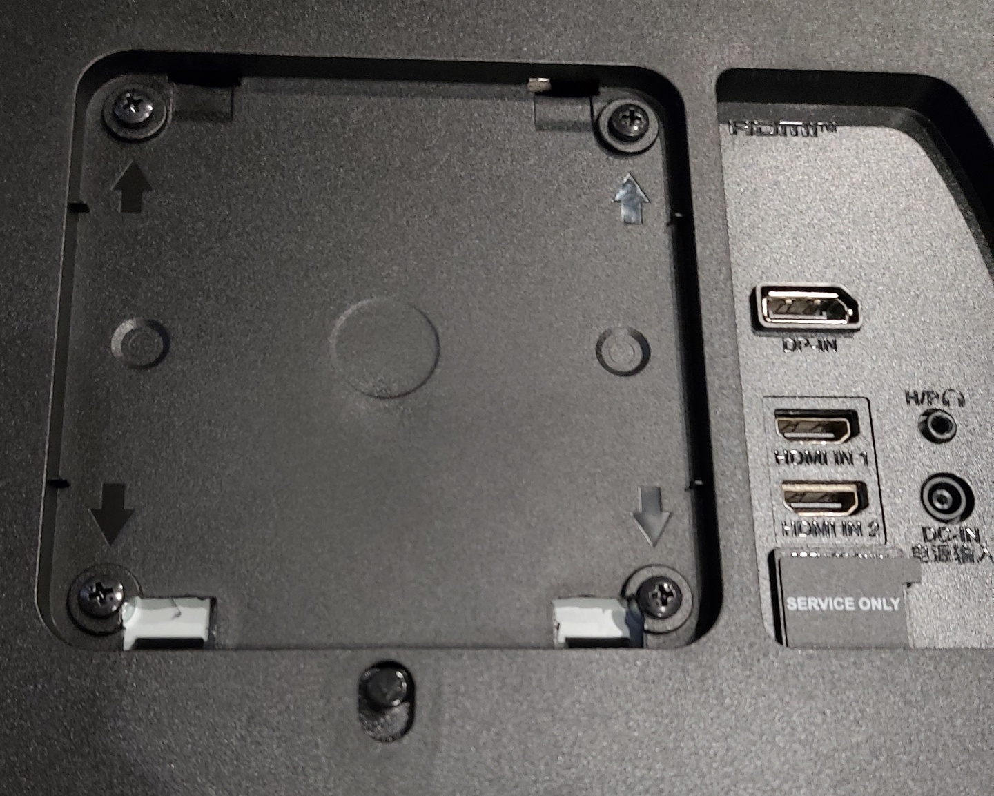 모니터 지지대의 연결부입니다. 이걸 들어다가 아래 사진의 모니터에 넣으면 됩니다. 위를 먼저 끼우고 아래쪽을 맞추면 딸깍! 하면서 모니터 본체와 연결됩니다.