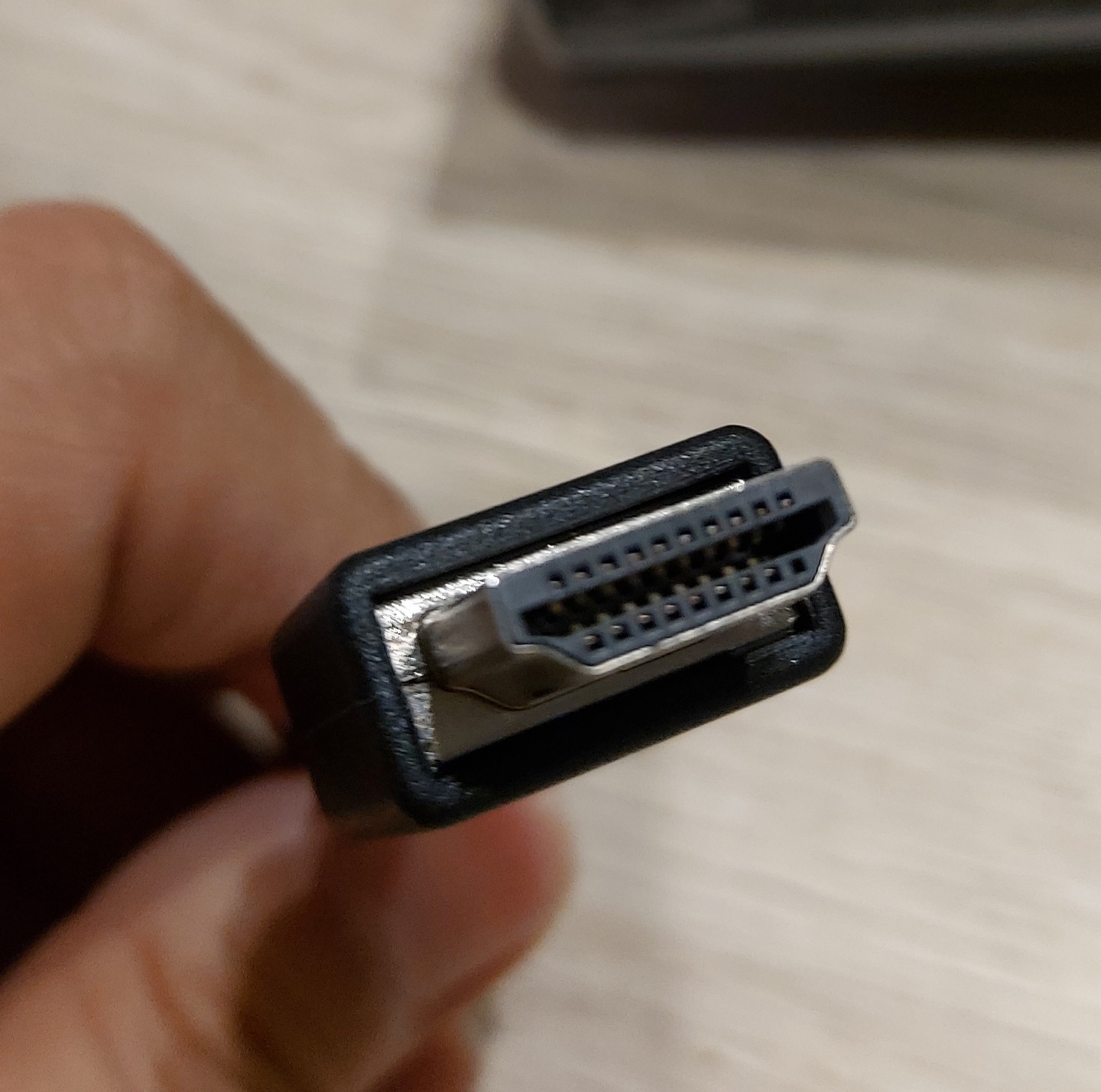 DP 케이블입니다. HDMI와 헷갈리지 말아야 합니다.