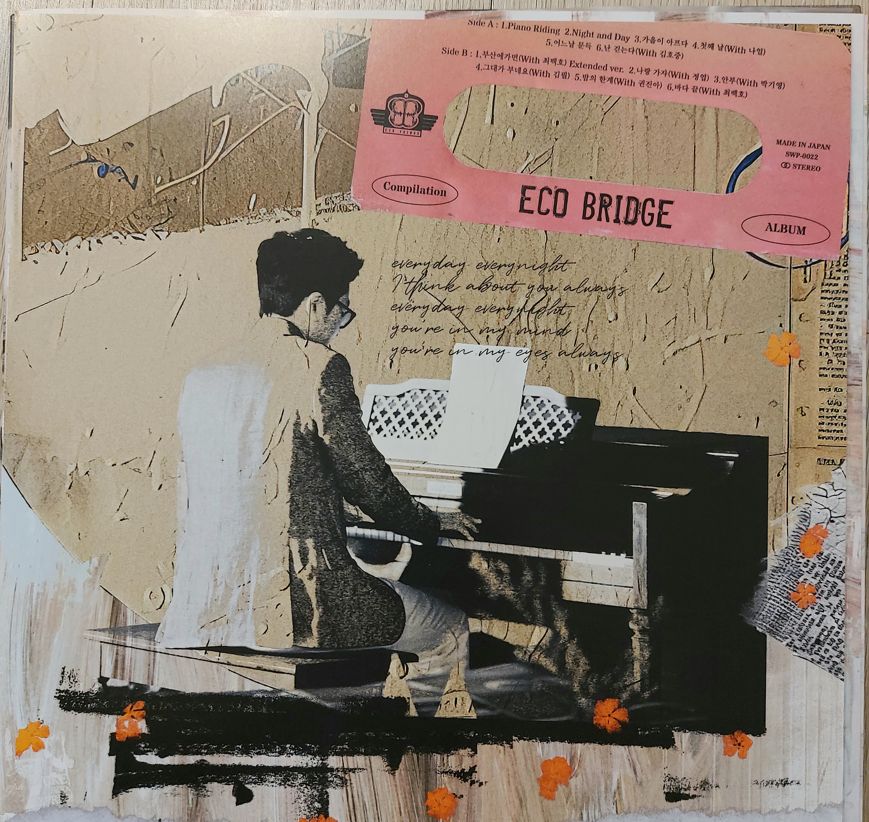 작곡가, 프로듀서, 가수로서 활동을 해온 에코브릿지가 15년간의 음악 활동을 되돌아보는 베스트 앨범인 "Compilation"을 얼마전 LP로 발매하였습니다. 1500장 한정반으로 발매하였는데, 정말 순식간에 품절이 되었습니다. 에코브릿지가 그 정도로 엄청난 뮤지션인가? 의아했지만, 아마도 최백호님의 '부산에 가면'이 수록된게 큰 원인이 아닌가도 생각해 봅니다.