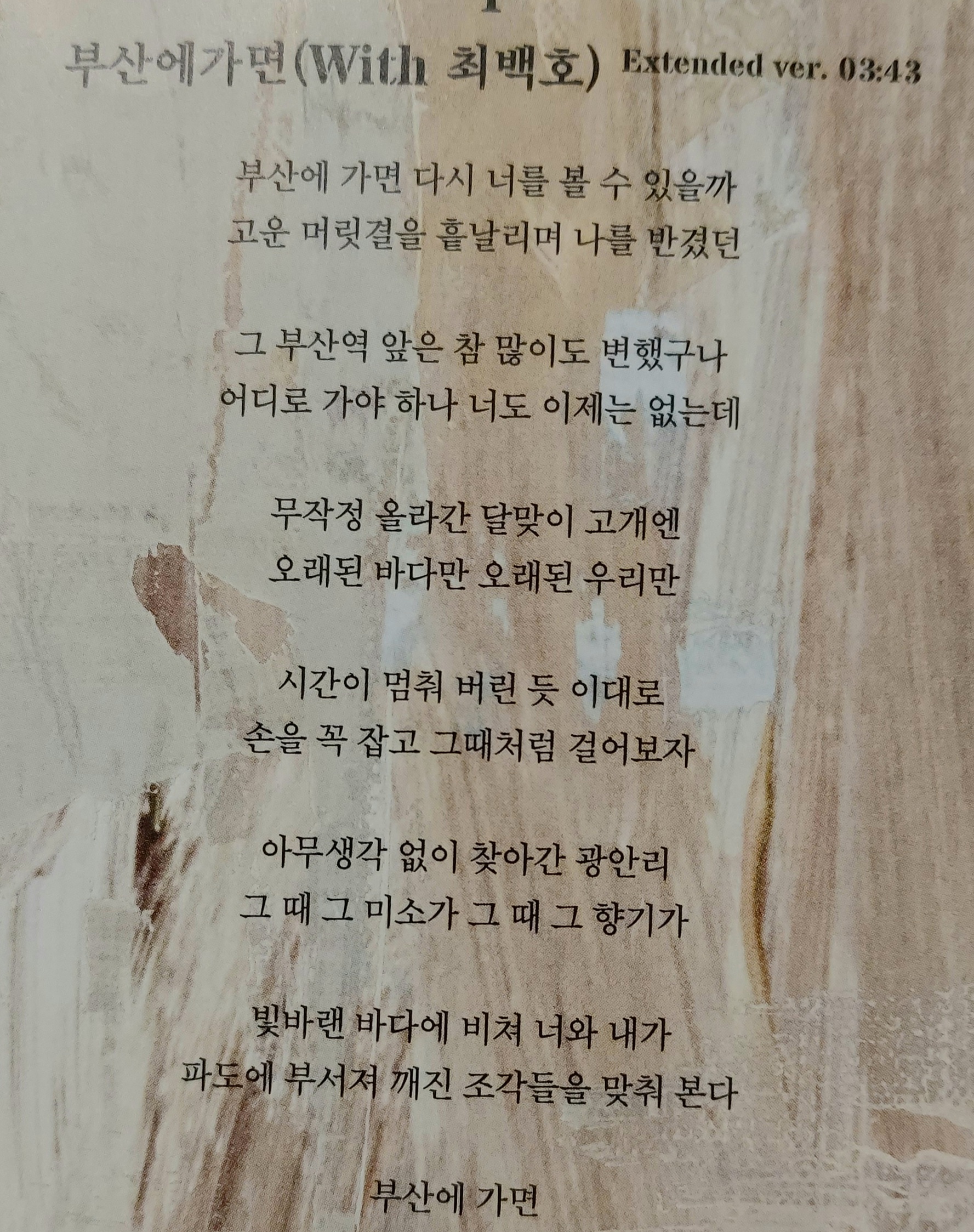 최백호님의 '부산에 가면' 가사입니다.