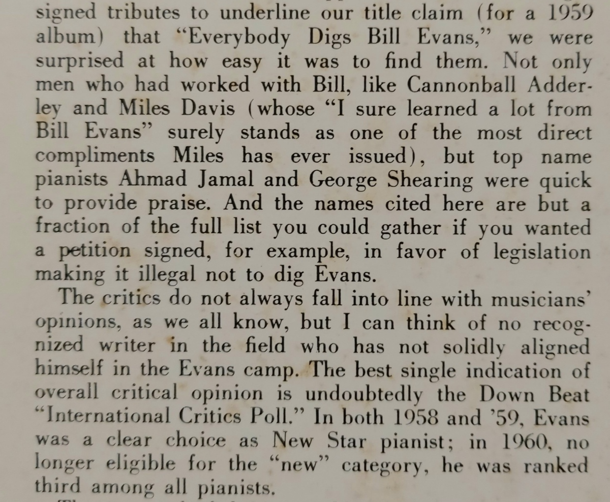 빌 에반스는 1929년 8월에 태어나 1980년 9월 51세에 세상을 떠나셨습니다. 그의 곡인 Waltz for Debby는 재즈 초보자들도 좋아할 정도의 완전 멋지고 유명한 곡이 되었습니다. 그는 그래미상 후보에 무려 31번이나 올랐으며, 그중 7개의 상을 수상했습니다. 또한 미국의 재즈 잡지인 DownBeat의 명예의 전당에 헌액되기도 했습니다.
