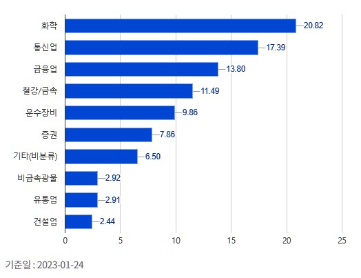 금융회사에 많이 치중된 모습입니다.