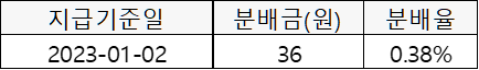 '22년 11월에 첫 상장된 ETF라, 첫 분배금은 올 1월에 지급되었습니다.