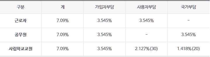 보수월액보험료(월): 보수월액 × 보험료율(7.09%)