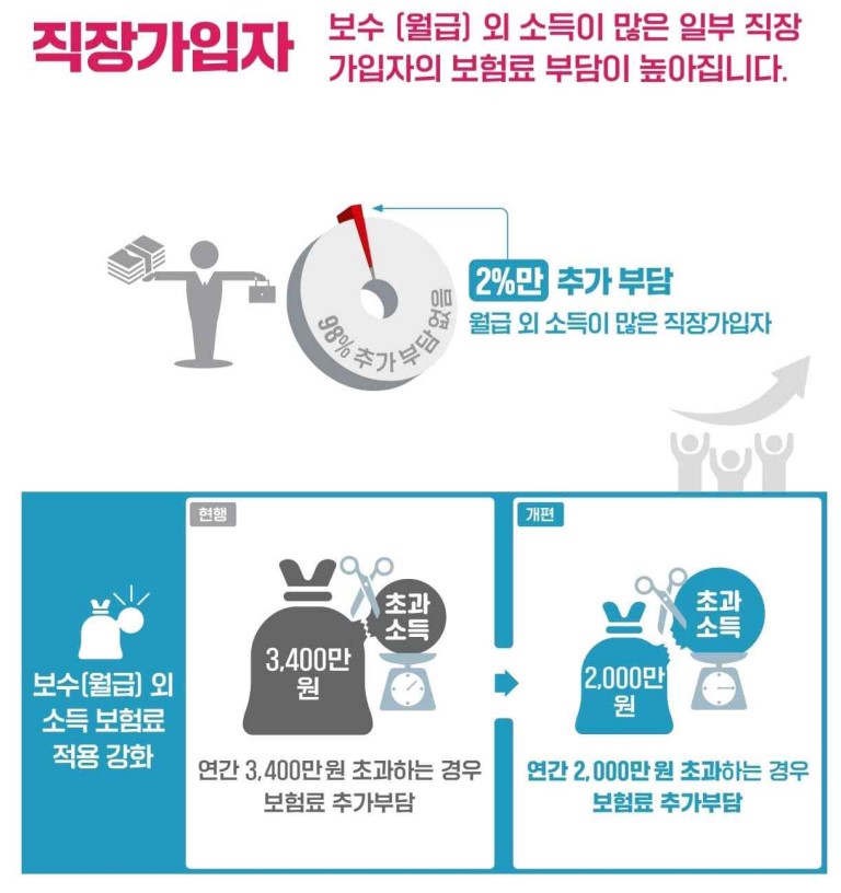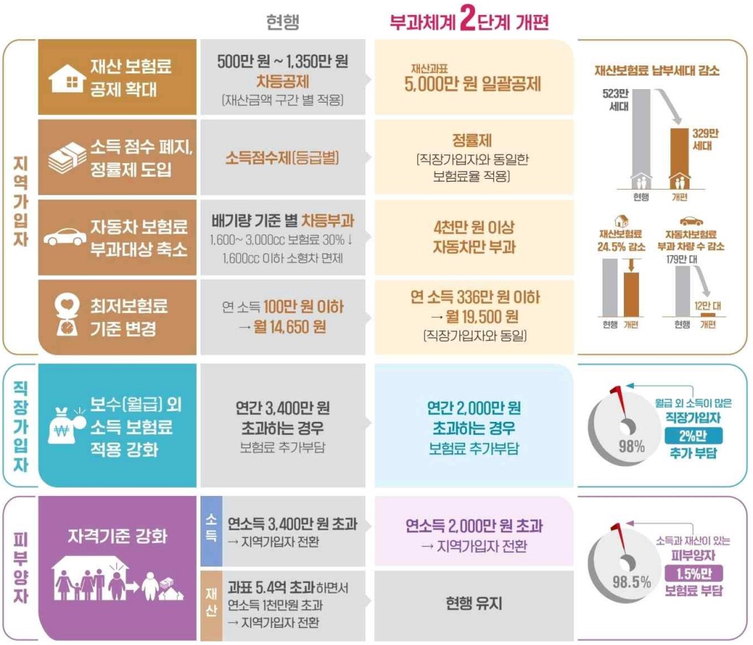 크게 지역가입자, 직장가입자, 피부양자에 대해 각각 개편되었습니다.