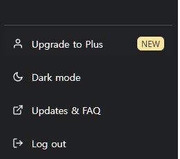 무료로 사용 가능한 챗GPT 3.5를 로그인해서 들어가면, 왼쪽 하단에 아래와 같이 메뉴가 있습니다. 여기에서 "Upgrade to Plus"가 한눈에 봐도 돈 쓰러 오세요~~ 라고 말하는 것 같습니다.