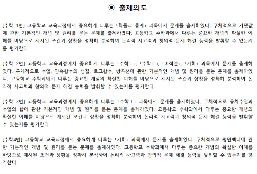 . 수학 및 과학과목 출제범위는 고교 교육과정(2015 개정 교육과정) 보통교과(진로선택 포함) 전체
