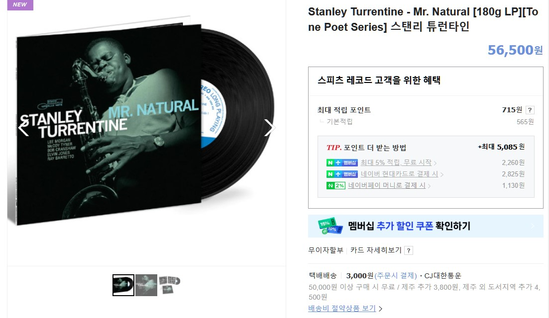 테너 색소폰 주자인 Stanley Turrentine의 1964년 앨범 "Mr. Natural"이 Tone Poet 시리즈로 발매됩니다. 이 앨범은 당초 1964년 9월 4일에 녹음된 것이지만, 앨범으로는 1980년에 첫 발매되었다고 합니다.