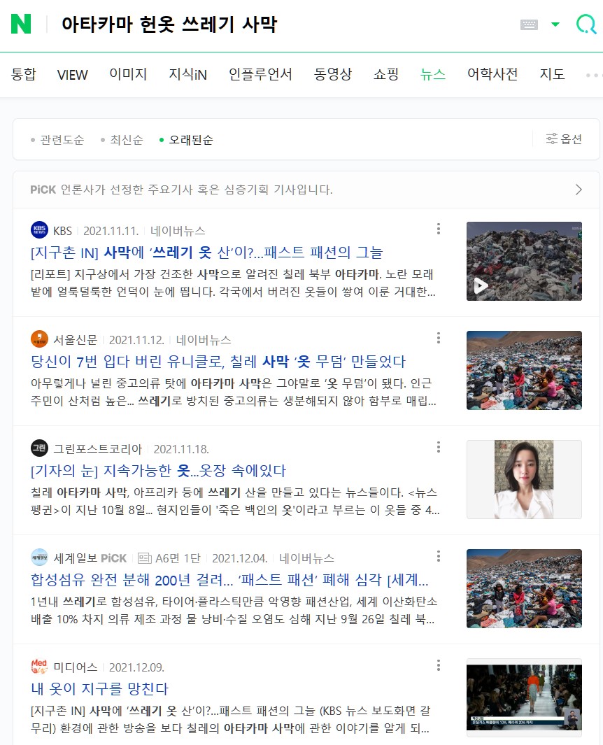 이런 아타카마 사막의 헌옷 쓰레기 기사는 우리나라에서도 2021년 11월부터 제법 많이 다루어져 왔습니다.