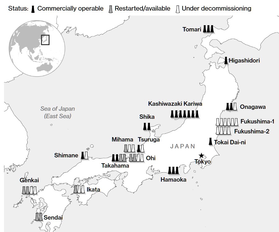 일본은 국내 정지된 원자로를 더 많이 재가동하는데 목표를 두고 있다.