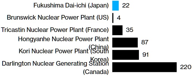 일본은 2011년 지진과 쓰나미로 손상된 후쿠시마 원전의 연료봉을 냉각하는데 사용된 물을 처리했다고 주장하여 이 과정이 안전하다고 주장하고 있다. 이 물은 500개의 올림픽 규모 수영장을 채울 정도로 많다.
