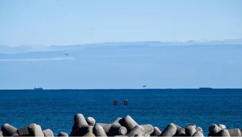 2023년 2월 28일, 일본 후쿠시마현에 있는 후쿠시마 다이이치 원전에서 약 7km 떨어진 나미에의 해변에서 보이는 환기구와 크레인들. REUTERS/Kim Kyung-Hoon/기사 사진