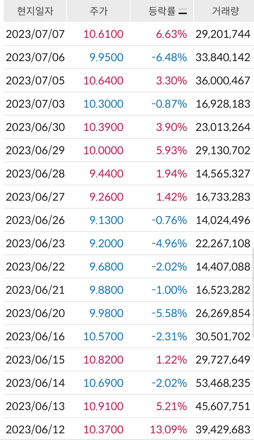 19년, 20년중반까지 10달러 아래에 있던 주가가 21년초 SK그룹이 투자를 하며 주가가 2배 이상 치솟기도 했지만, 이내 회계 오류가 발견되고 이후 친환경에 대한 실망감때문인지 (믿었던 바이든이 생각보다는 정책 진도가 잘 나가지 않은) 출렁거리며 내려오다가 급기야는 올해 들어 다시 거의 3년만에 10달러 아래로 내려왔습니다. 7달러에서 9달러를 오가더니, 한달 사이에 10달러를 두번 터치하며 다시 꿈틀거리고 있습니다. 물론, 이 꿈틀거림이 다시 상승하기 위한 발판인지, 조금 더 바닥을 파기 위한 마지막 몸부림인지는 모르겠지만, 이전보다는 평이 많이 나아졌습니다.