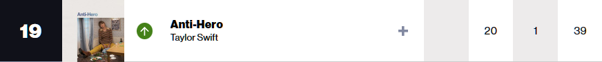 지난주 (2023년 7월 15일자) 차트에서 싱글 Hot 100 차트에서 올리비아 로드리고 (Olivia Rodrigo)의 신곡 'Vampire'가 핫샷 데뷔로 1위에 진입하는 바람에 13주간 차지하던 빌보드 Hot 100 차트 1위자리에서 내