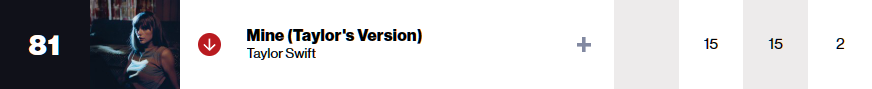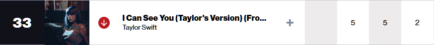 지난주에 재녹음한 "Speak Now(재녹음 앨범"의 전 수록곡 22개가 동시에 차트 진입하며 Taylor Swift의 노래가 무려 25곡이 동시에 차트에 있었는데, 이번주에는 소소하게 8곡만 차트인 하고 있습니다. 지난주 5위로 진입하였던 신곡 I can see you는 이번주 33위로 급하락했습니다. 그래도 7집 앨범 "Lover"에 수록되었던 'Cruel summer'와 10집 앨범 "Midnights"에 수록된 'Karma'가 9위와 11위를 지키고 있습니다.