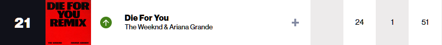 21. Die for you - The Weeknd & Ariana Grande (51주)