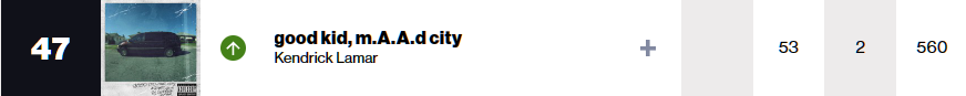 47. good kid, m.A.A.d. city - Kendrick Lamar (560주)