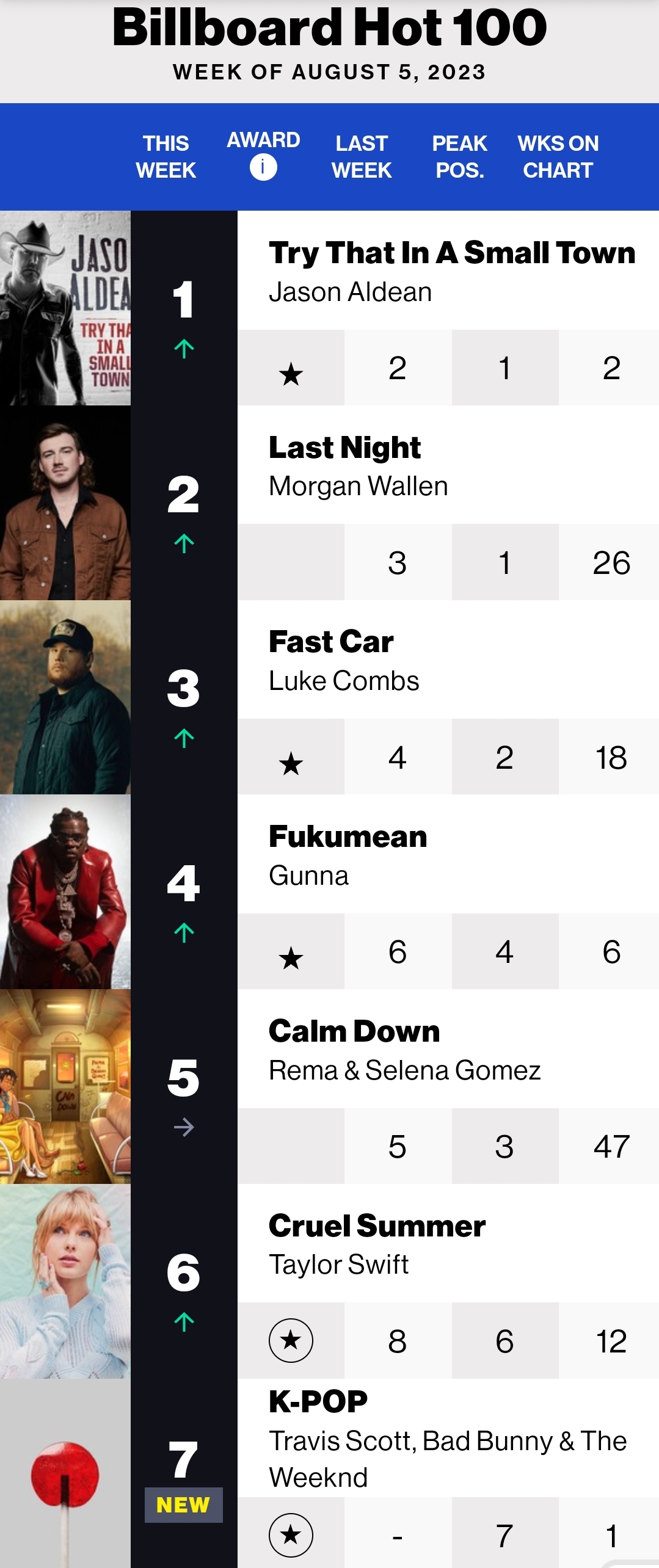 2023년 8월 5일자 차트는 조금 늦게 업데이트가 된 느낌입니다.