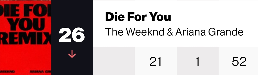 26위 The Weeknd & Ariana Grande - Die For You (52주)