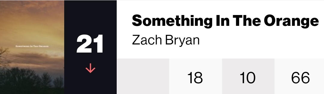 Zach Bryan의 Something in the orange는 이제 66주라서, 2주만 더 차트인 유지하게 되면 차트에 오래 머문 노래들 Top10 기록 하단에 이름을 올릴 수 있을 듯 합니다.
