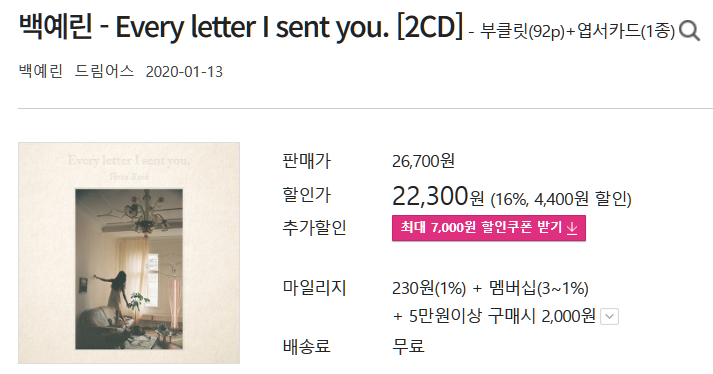 ▶ 백예린 - 정규 1집 Every letter I sent you [2LP]