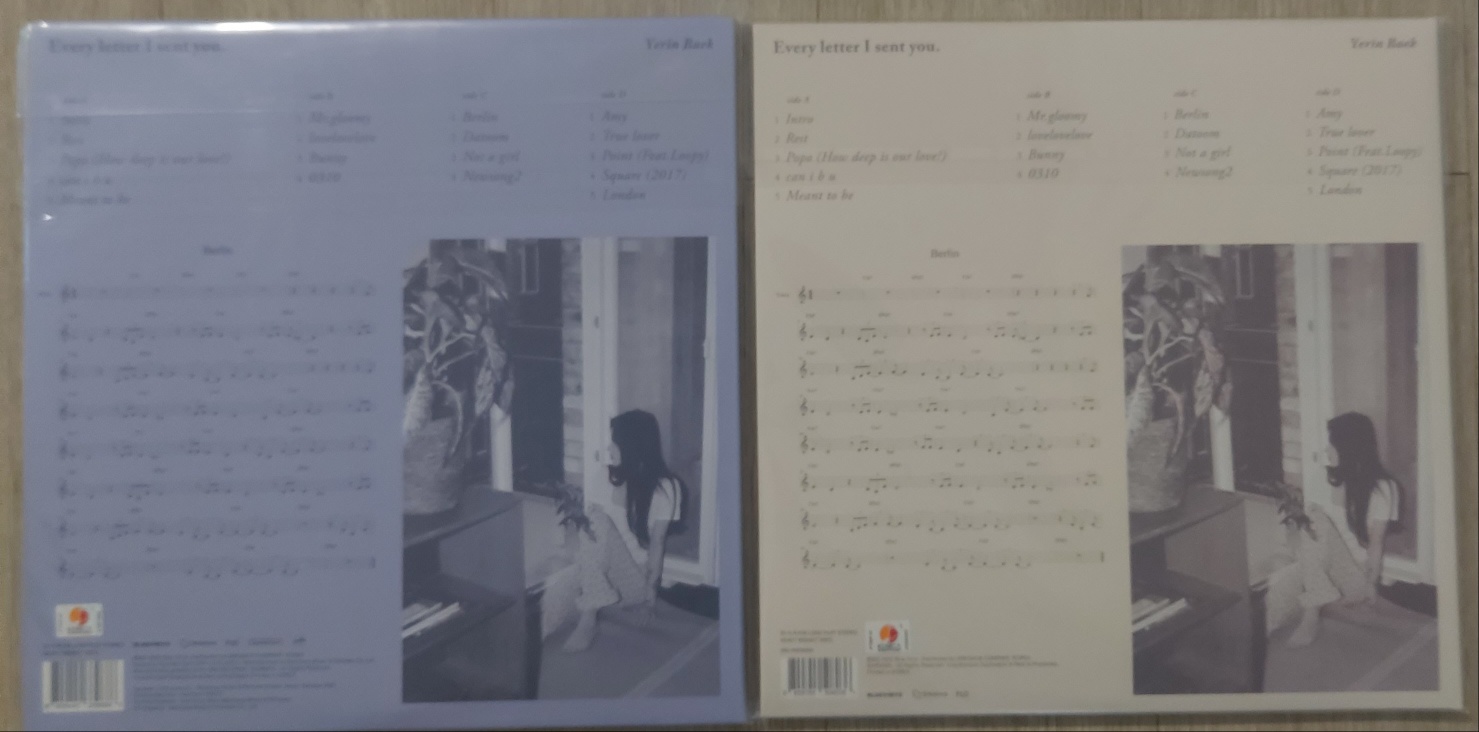 1집은 2020년 5월에 2천장 한정으로 발매되었던 한정반 LP를 보유중입니다. 그래서 한정반 LP와 이번에 나온 재발매반의 자켓을 비교해보았습니다. (2020년 8월에 1.5만장의 일반반 LP도 발매되었지만, 그건 없습니다)