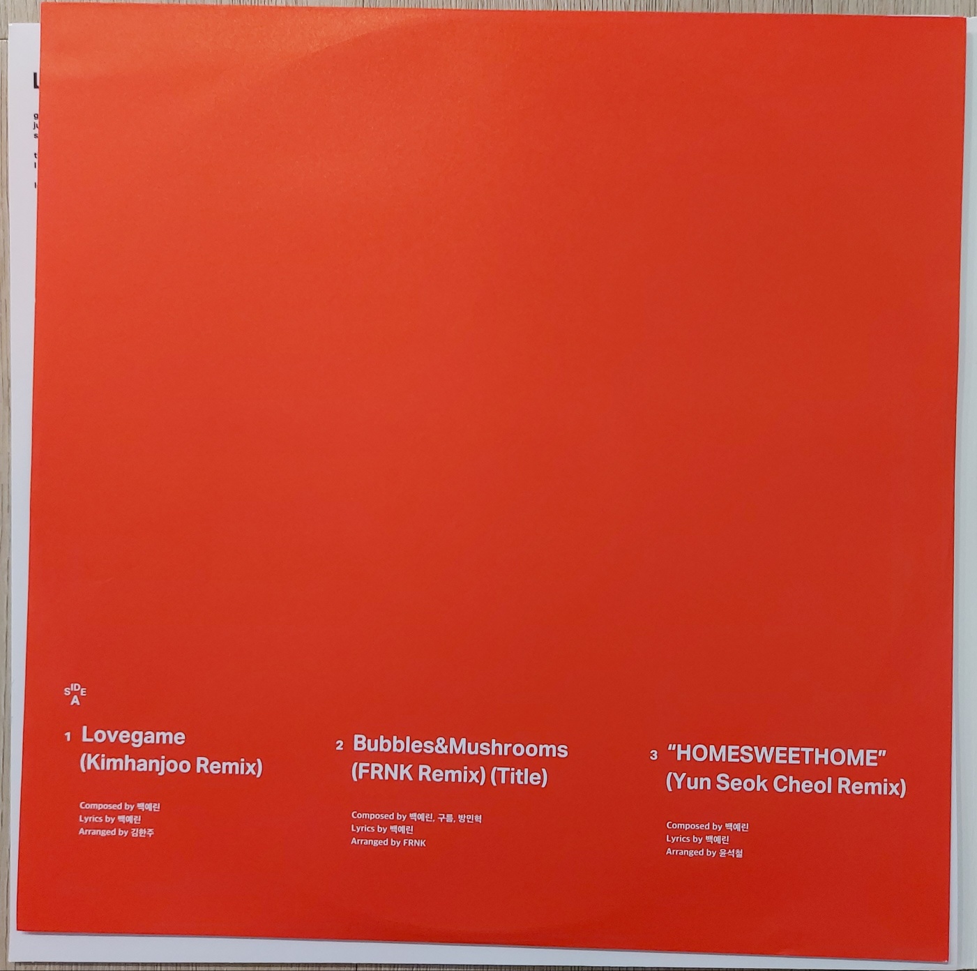 정규 1집 LP의 뒷면 자켓입니다. 왼쪽이 한정반 LP, 오른쪽이 재발매반 LP 입니다. 뒷면 자켓은 색상만 다를뿐 디자인은 동일합니다.