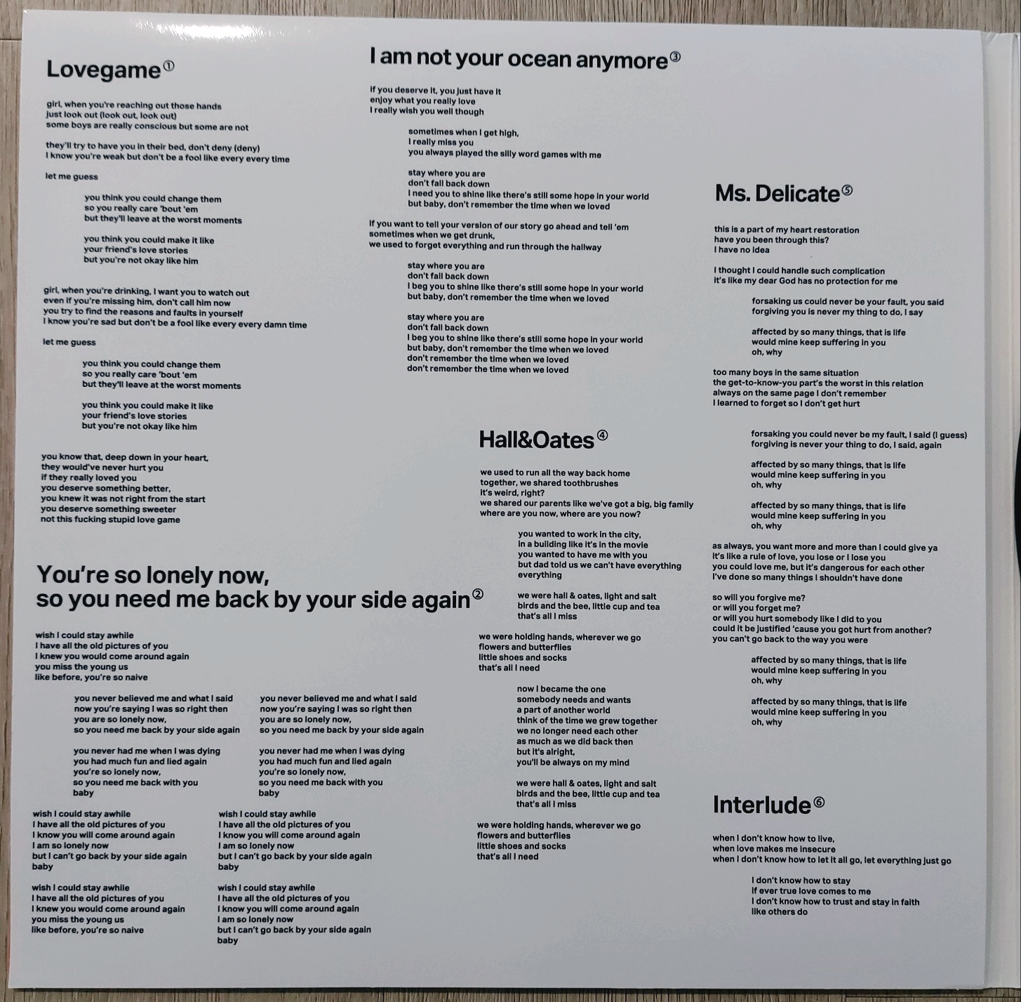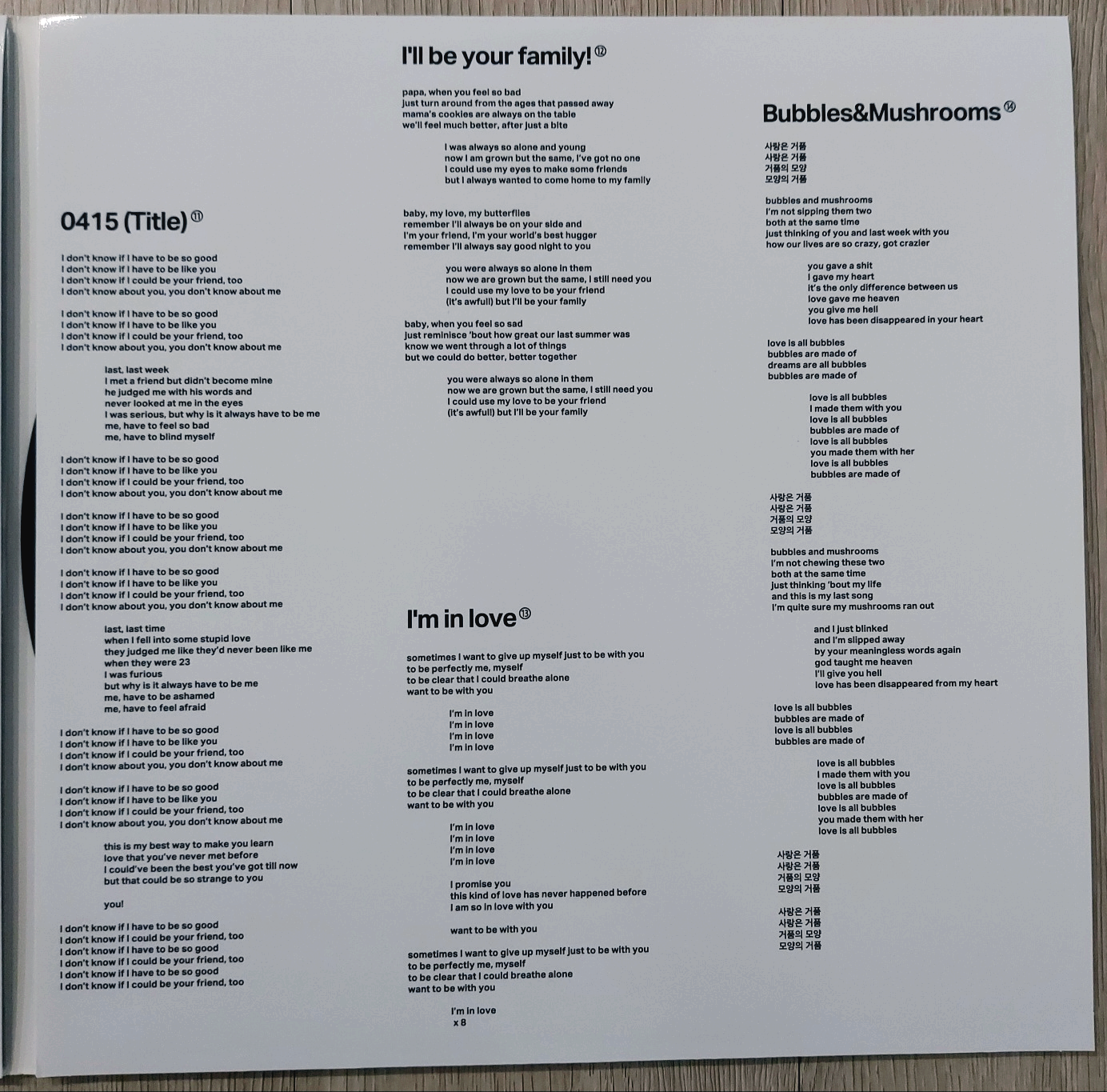 2집 앨범의 수록곡 가사는 이렇게 적혀 있습니다.