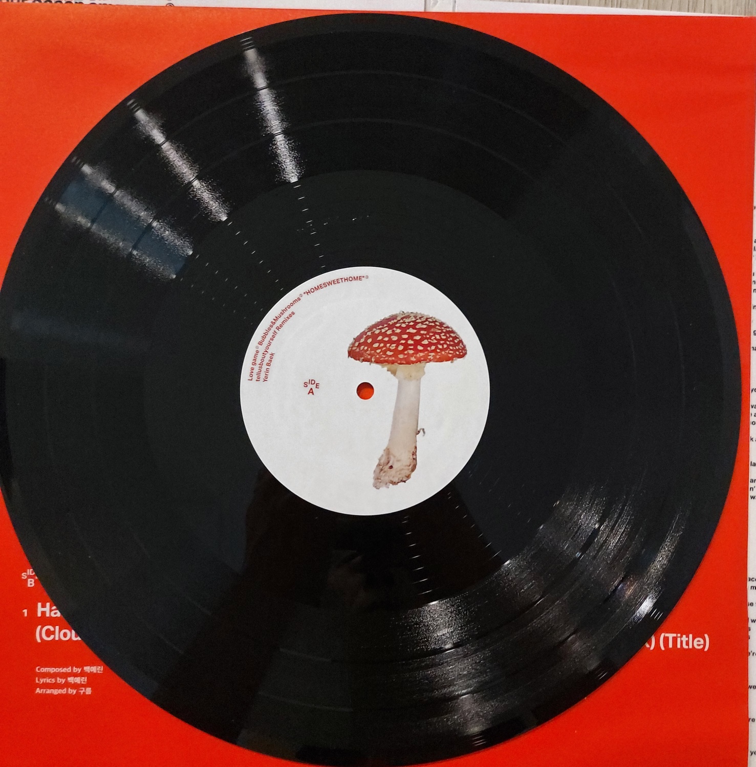 앞면, 뒷면 이외에도 안쪽에 가려져있었던 버섯 자켓 그림이 보입니다.