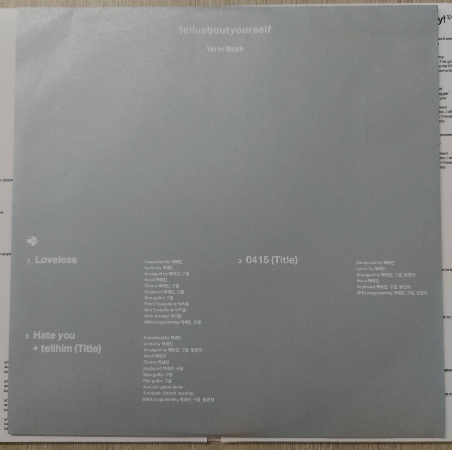 ▶ 백예린 - 정규 2집 tellusboutyourself + 2집 리믹스 [3LP]