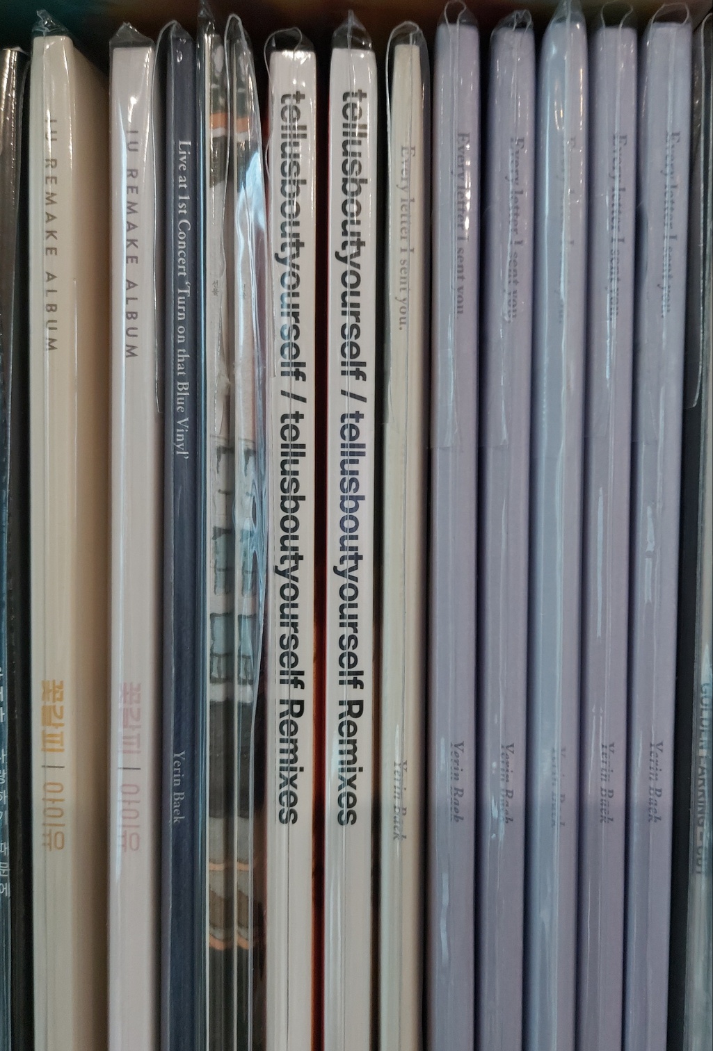 제가 가장 좋아하는 여가수가 4명 있는데, 그중 3명이 LP를 발매하였고, 그중 2명의 LP가 한데 모여 있습니다 ^^ 어제 소개해드렸던 아이유의 "꽃갈피" 초반 LP와 재반 LP, 그리고 백예린양의 1집 한정반, 재발매 블랙반, 2집, EP 선물, 라이브 앨범입니다. (한정반 LP는 당연히 정가를 주고 구매한 것이 아니라 플미를 쎄게 주고 구매한 것입니다 ^^;)