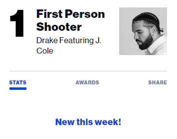 1위 Drake feat. J. Cole - First Person Shooter (1위로 데뷔)