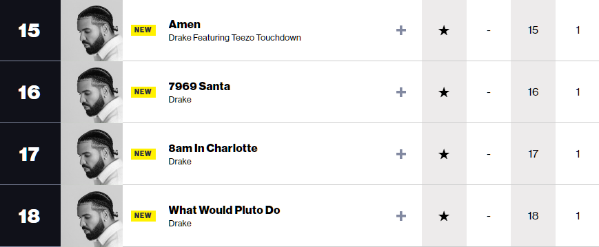 Drake의 각종 빌보드 차트 기록은 아래에서 좀 더 상세히 다루도록 하겠습니다.