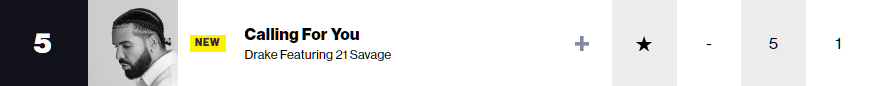 No. 5, Drake feat. 21 Savage, “Calling for You”