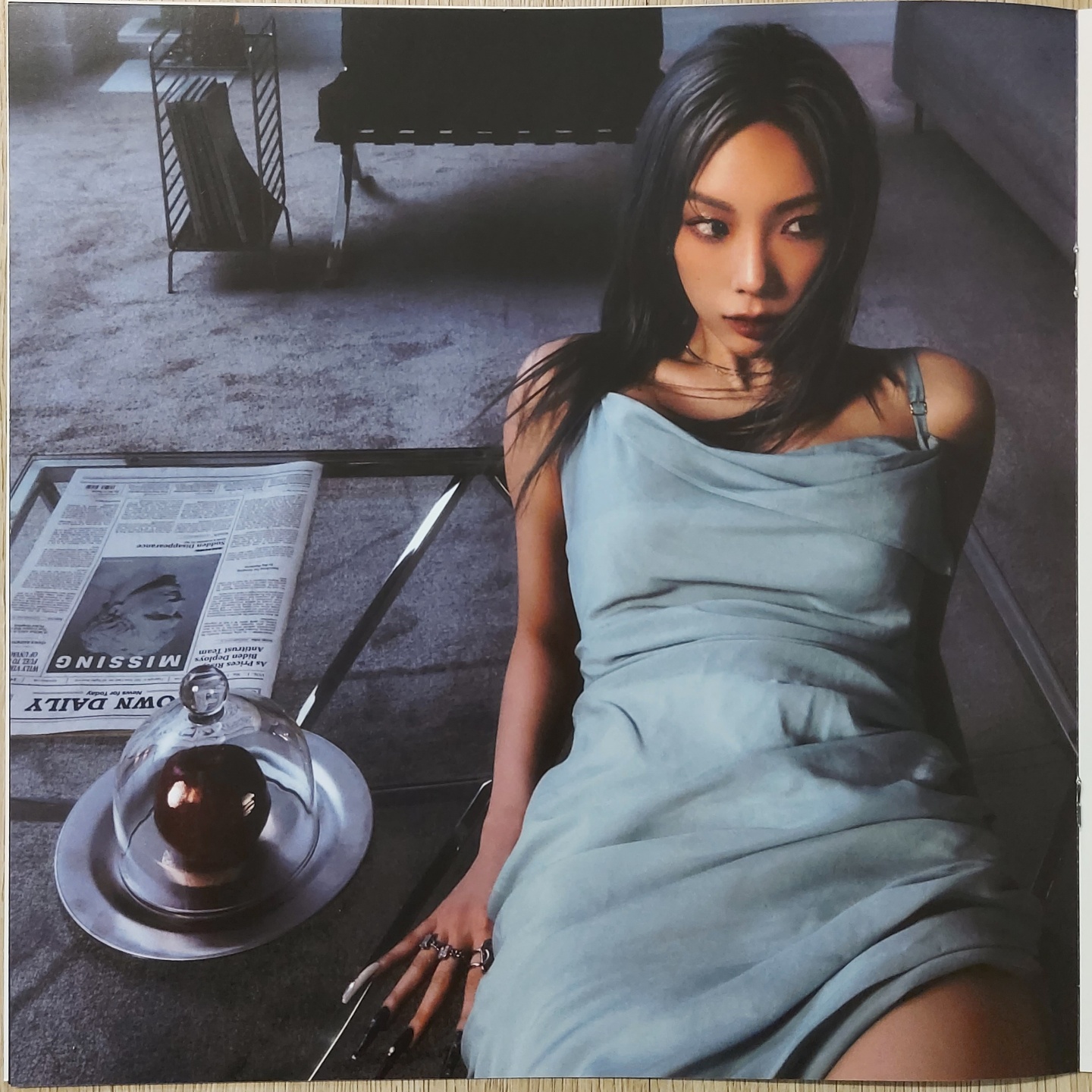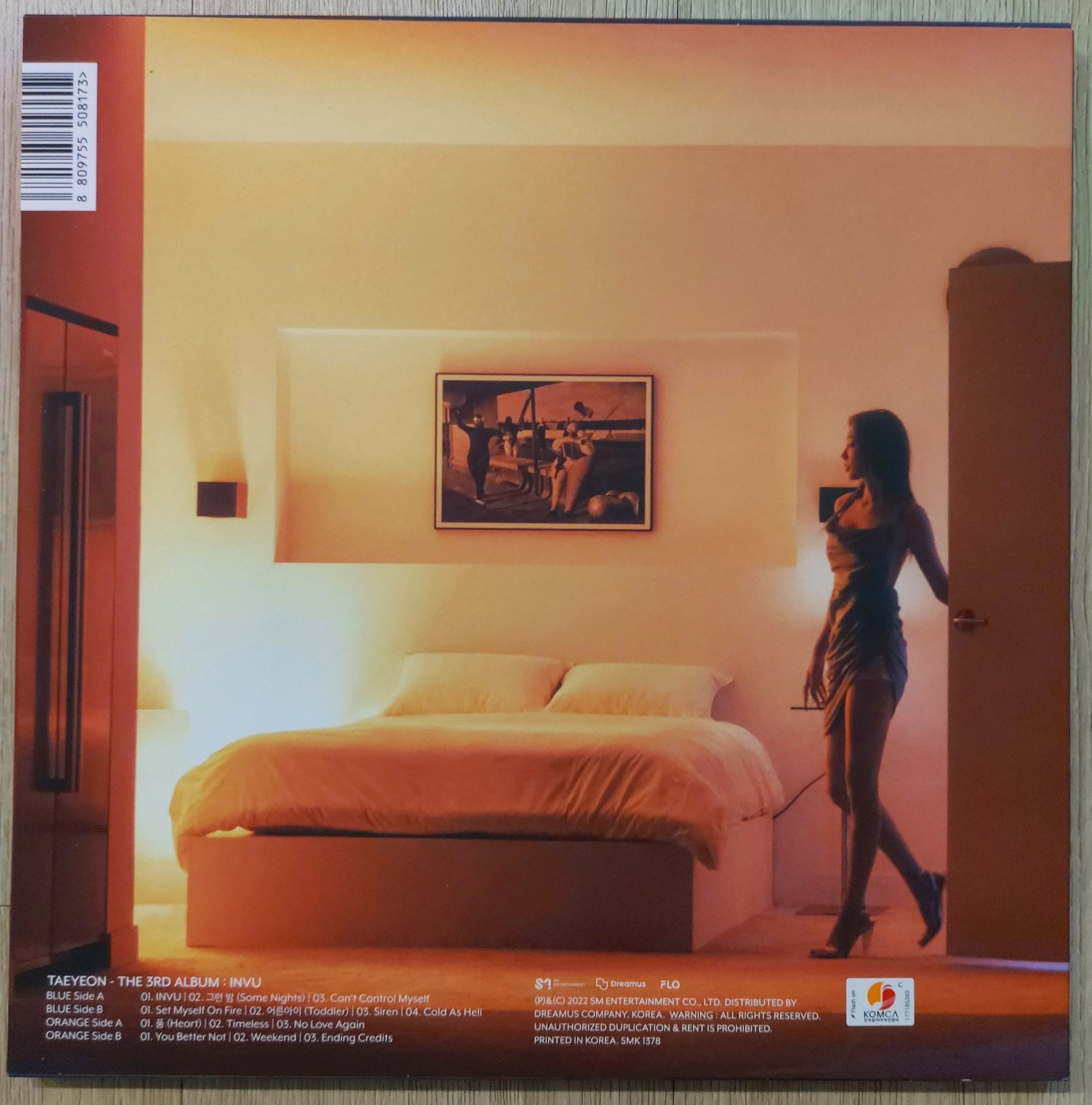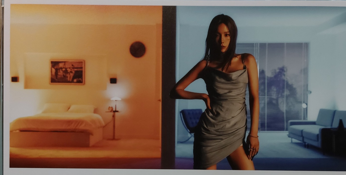 앨범 자켓 뒷면 사진입니다. 침대가 있는 침실이고 침대위에는 그림 한장이 걸려있습니다. 태연은 문을 열고 들어오고 있네요.