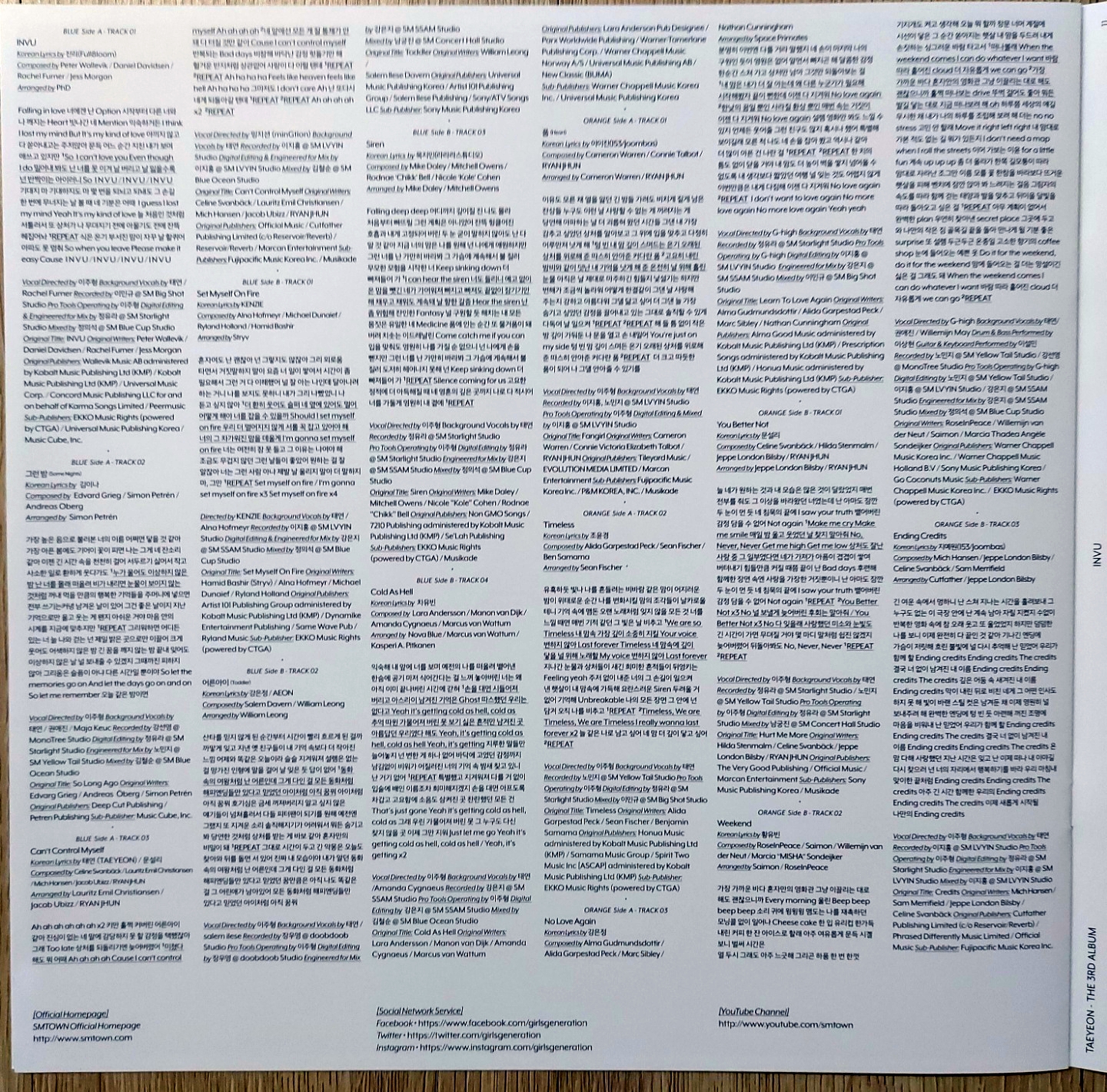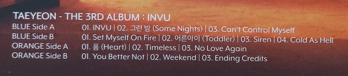 < 태연 3집 앨범 "INVU" 수록곡 >