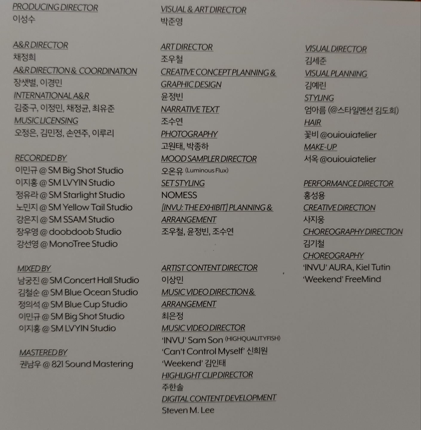 이 앨범에서는 타이틀 곡인 INVU를 비롯하여, 전곡이 멜론, 지니뮤직, 벅스 등의 음원차트에 진입하는 기록도 세웠다고 합니다.