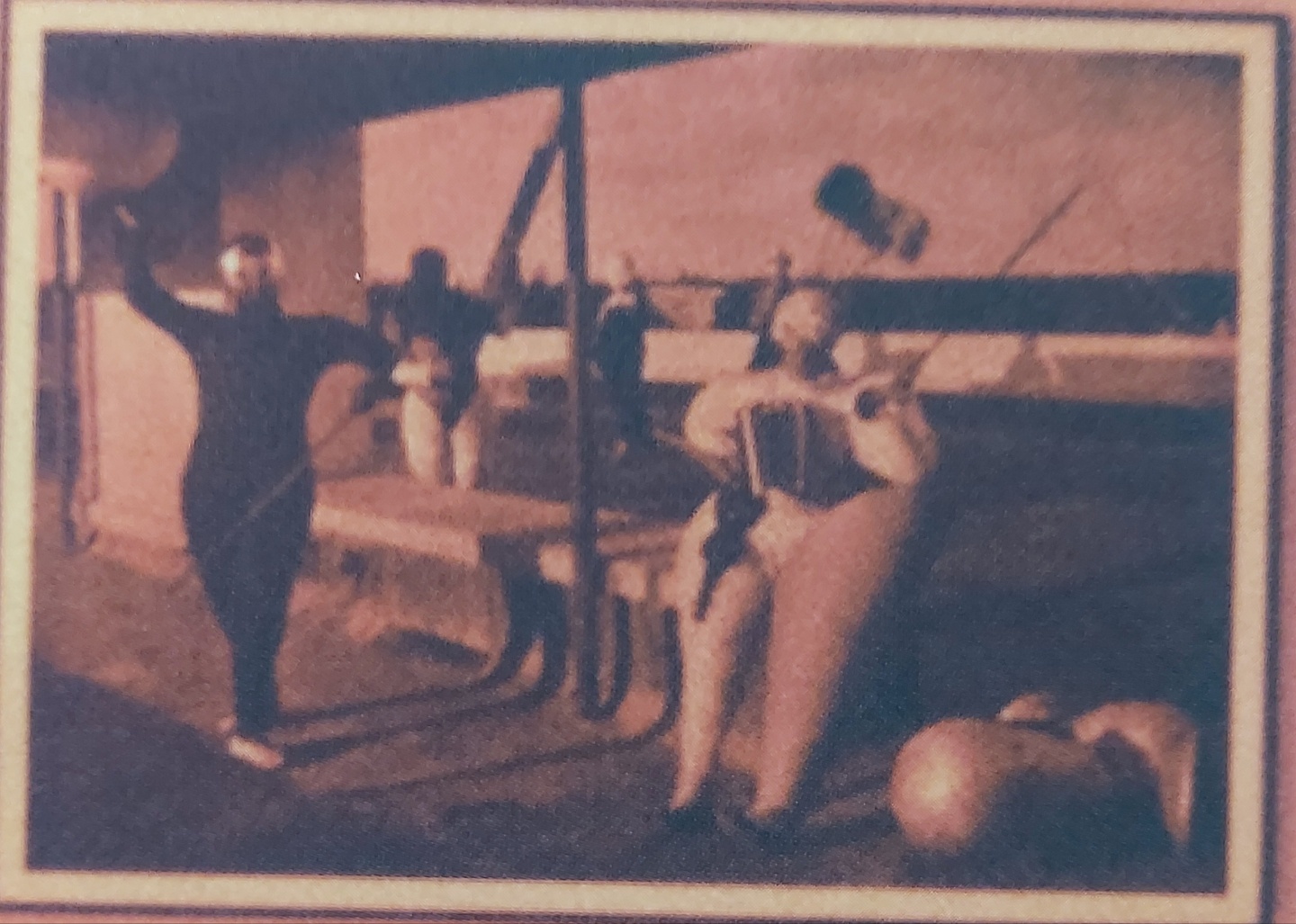 앨범 뒷면 자켓 사진중, 침대 위에 걸린 그림을 확대해보았습니다. 찾아보니, 이 그림은 독일 슈투트가르트 출신의 화가인 오스카 슐레머(Oskar Schlemmer)의 1927년 작품인 Pantomime 'Treppenwitz'라고 합니다.