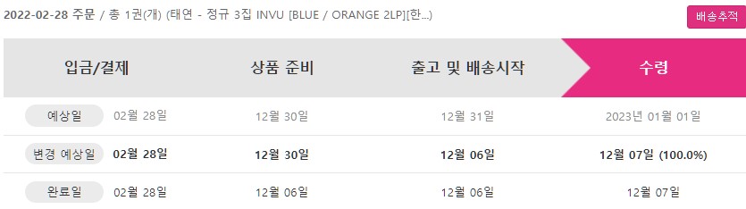 2022년 2월 14일에 발매된 걸그룹 "소녀시대" 출신의 솔로 가수 "태연"의 정규 3집 앨범 "INVU" 의 LP가 기나긴 기다림 끝에 드디어 도착하였습니다. 2월 28일에 주문을 한 것인데, 12월 7일 오늘에서야 도착을 한 것입니다 ㅎㅎ 그래도 당초 12월 31일 발매였으나, 그나마 3주 이상 앞당겨진 것이네요