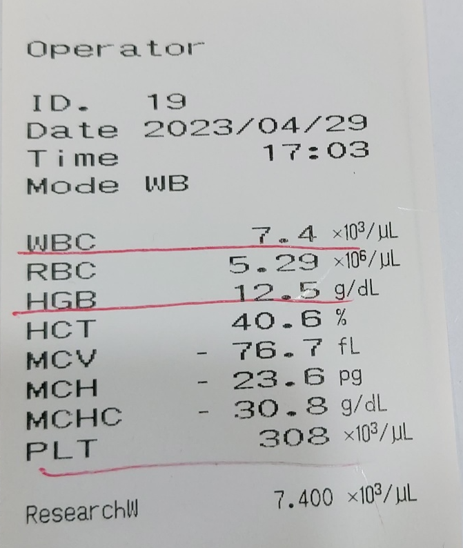 헌혈전 피 검사 결과입니다. 전 보통 헤모글로빈 수치 (HGB)가 부족한 편이라, 철분제를 거의 매일 복용하고 헌혈을 합니다. 이 수치가 전혈은 12.5이 넘어야 가능하고, 혈소판 혈장 헌혈은 12.0이 넘어야 가능합니다. 그래서 이 수치를 열심히 관리하고 있습니다.