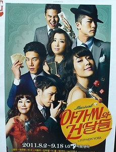 20여년전 봤었던 뮤지컬 "아가씨와 건달들"을 정말 오랜만에 다시 봤습니다. 물론, 그때와는 무대도 다르고, 배우도 다르고, 음악도 다르고, 공연장도 달라졌지요. 역삼동 LG아트센터에서 8/2일부터 9/18일까지 공연이 계속 된다고 합니다. VIP 가격이 13만원으로 여타 뮤지컬 공연의 가격과 비슷합니다. 전, 조기 예매를 통해 30% 할인을 받았고, 자리도 1열(앞쪽 A,B,C열 다음)에서 구경을 했습니다. ㅎㅎ 남자 주연 2명, 여자 주연 2명으로 구성되어 있는데, 제가 본 공연에는 옥주현씨가 여자 주연중 한명인 아들레이드 역을 맡아 출연하였습니다. 그리고, 남자 주연중 한명인 스카이역에는 무용가 출신의 배우 이용우씨가 나왔습니다. 공연 내내 남자 주인공들의 노래가 많지 않고 노래 실력이 좀 어색하다..